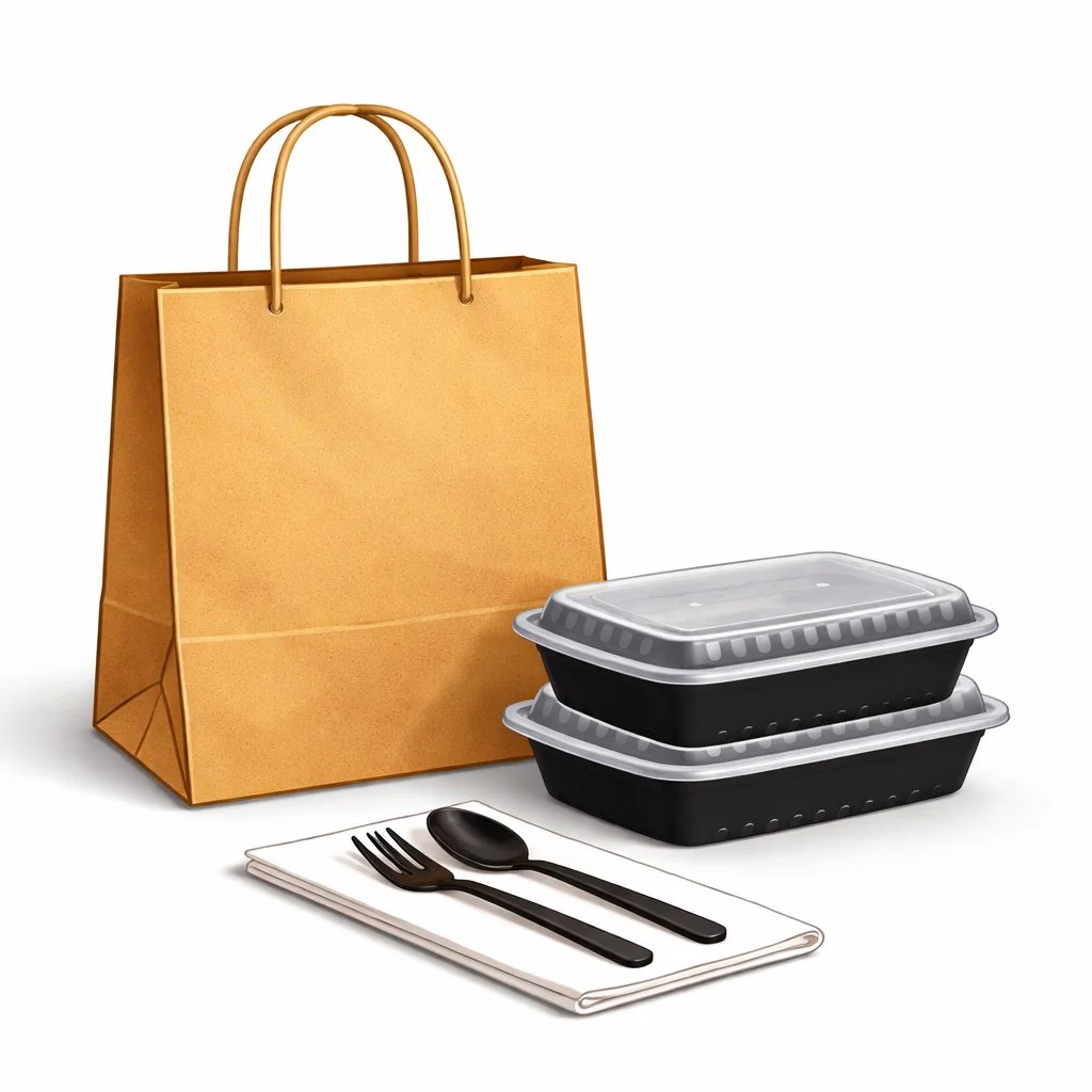 Delivered in convenient takeaway packaging with utensils included.